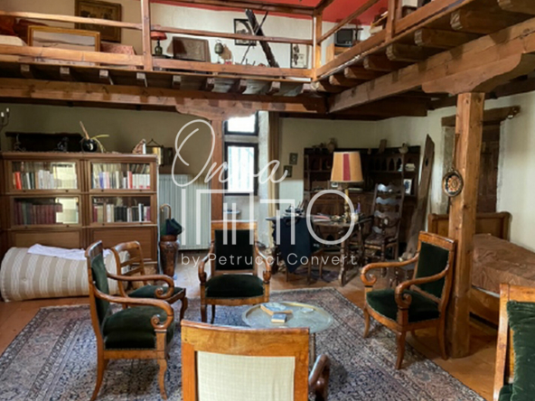 Cette propriété coche toutes les cases pour en faire une demeure d’exception : hauteur sous plafond, poutres et pierres apparentes, espaces cocooning, cheminée en pierre, tomettes, pigeonnier, .